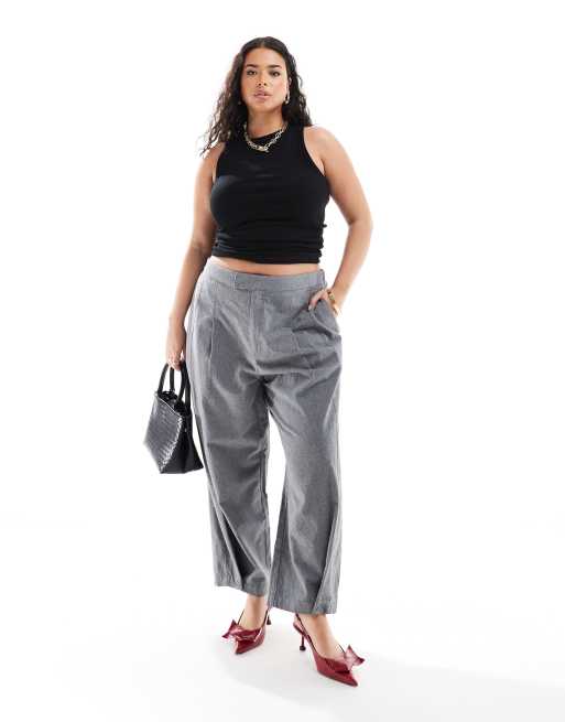 ASOS DESIGN Curve flannel barrel leg pants in gray