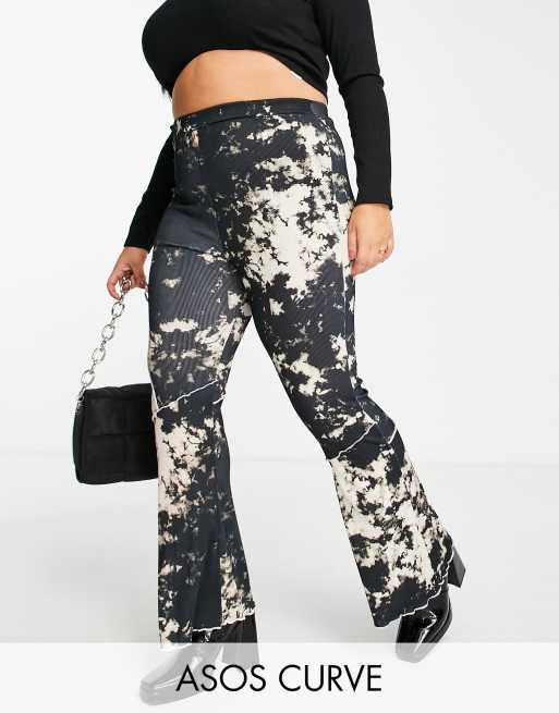 ASOS DESIGN Curve flare pant in cutabout tie dye print with raw edge exposed seams