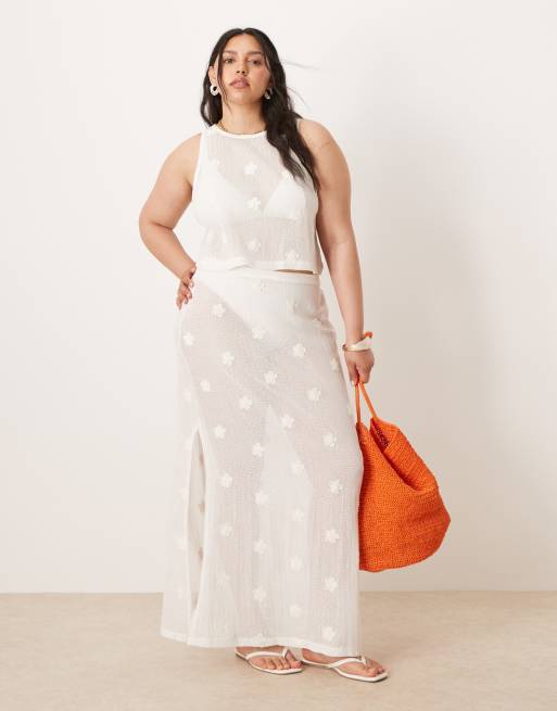 ASOS DESIGN Curve floral embroidery mesh crop top and maxi skirt set