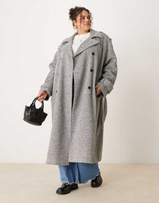ASOS DESIGN Curve formal trench coat in salt and pepper