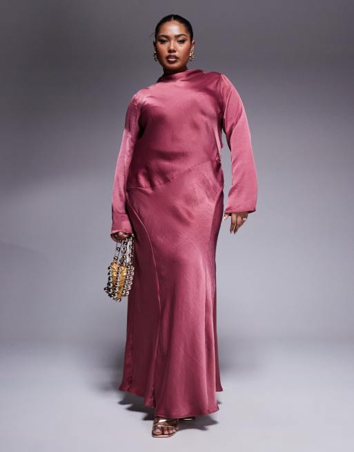 ASOS DESIGN Curve high neck seam detail satin maxi dress in dusky rose