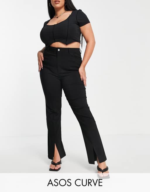 ASOS DESIGN Curve high rise 'sassy' stretch split front pant in black