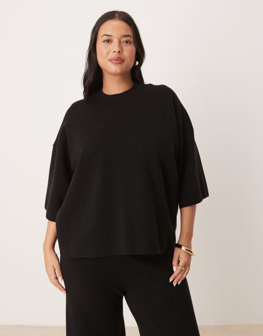 ASOS DESIGN Curve knit structured oversized T-shirt in black