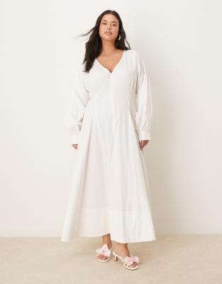 ASOS DESIGN Curve long sleeve v neck poplin maxi dress in white