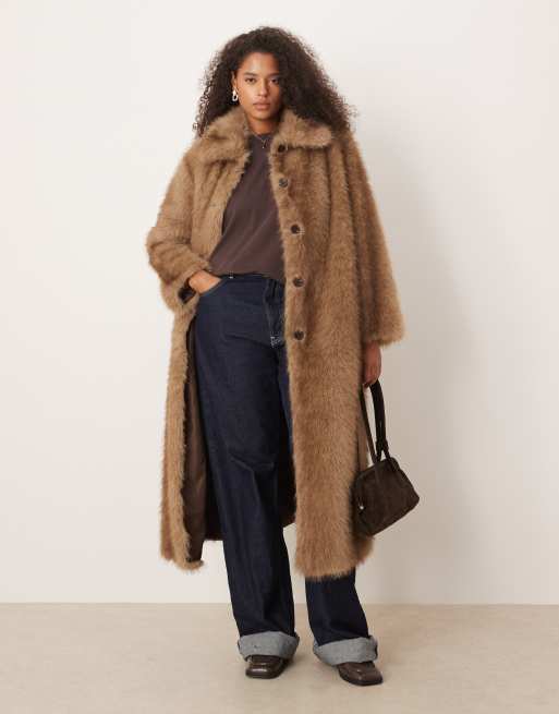 ASOS DESIGN Curve longline tipped faux fur car coat in brown