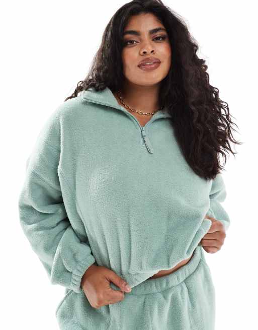 ASOS DESIGN Curve lounge microfleece zip collar sweat in sage