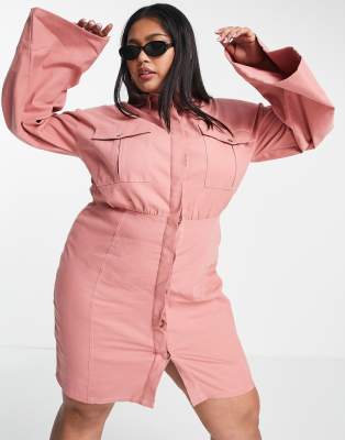 ASOS DESIGN Curve mini shirt dress with utility pockets in rose