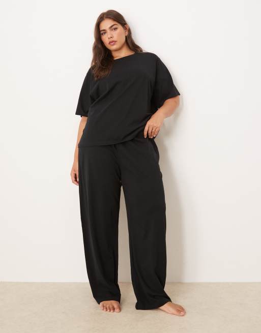 ASOS DESIGN Curve mix & match cotton oversized pajamas in black