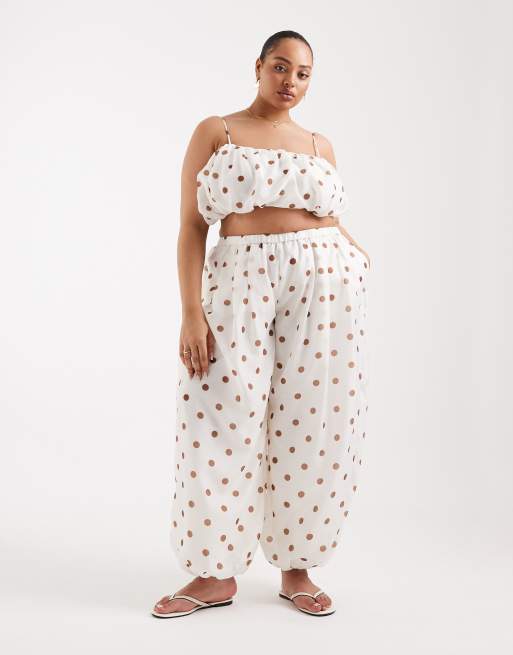ASOS DESIGN Curve oversized balloon pants in terracotta polka dots - part of a set