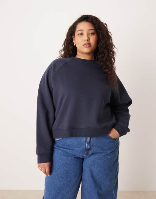 ASOS DESIGN Curve oversized brushback sweatshirt with raglan detail in navy