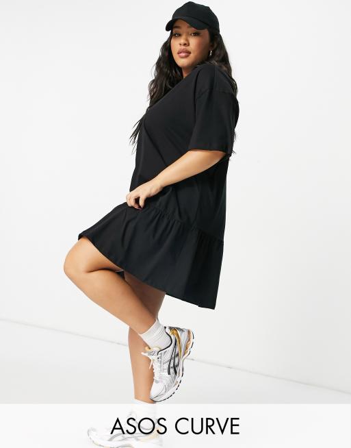 ASOS DESIGN Curve oversized t-shirt dress with frill hem in black