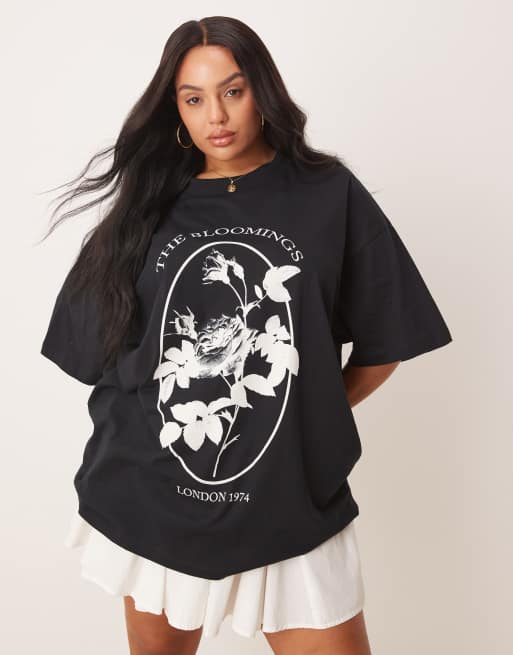 ASOS DESIGN Curve oversized t-shirt with floral blooming graphic in black