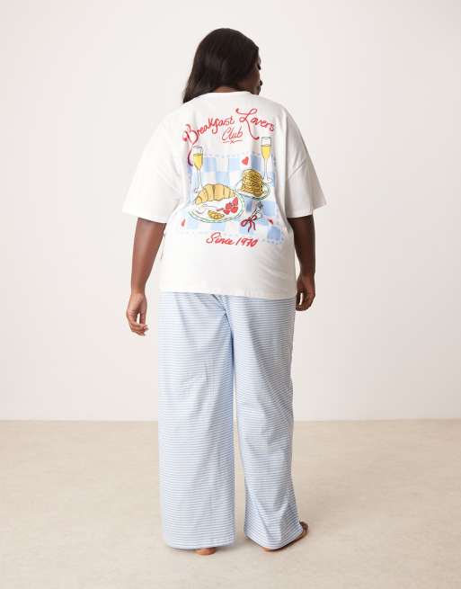 ASOS DESIGN Curve oversized tee & wide leg pants pajama set in breakfast lovers print