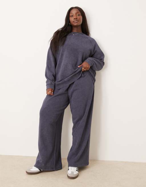 ASOS DESIGN Curve oversized wide leg sweatpants in washed navy - part of a set
