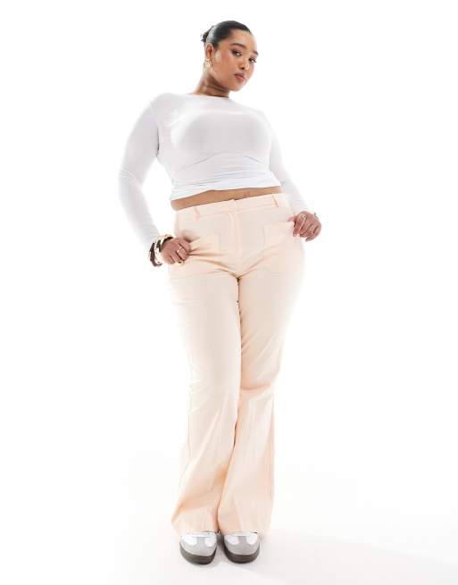 ASOS DESIGN Curve patch pocket flare pants in apricot
