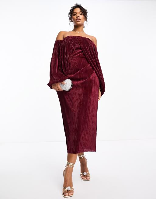ASOS DESIGN Curve plisse overlay midi dress with open back detail in wine