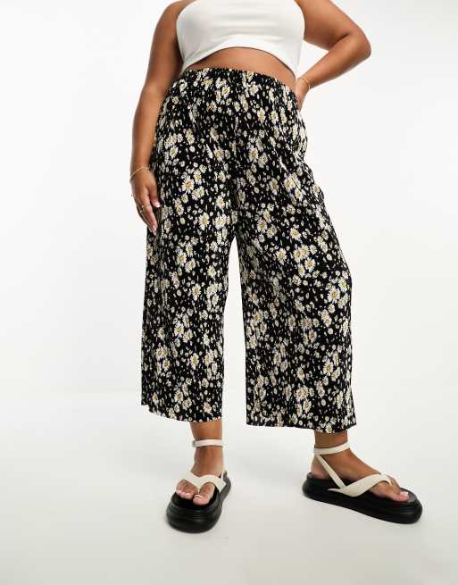 ASOS DESIGN Curve plisse wide leg culotte pants in dark based floral print