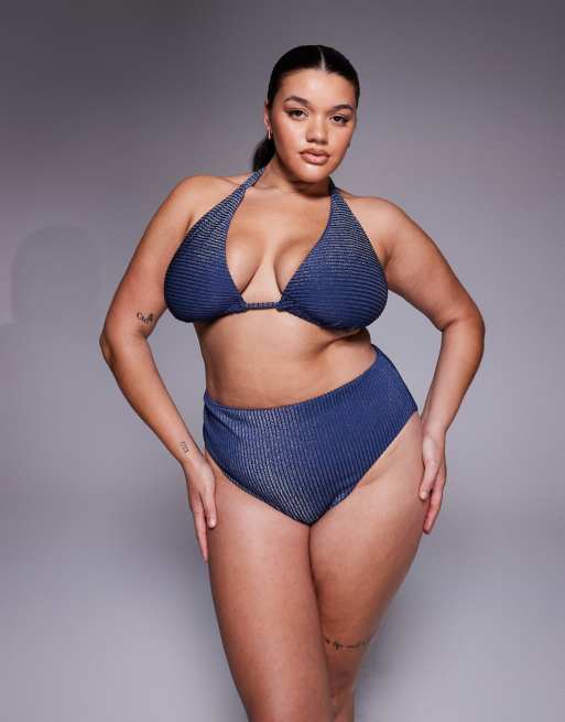 ASOS DESIGN Curve Riddy glitter rib knit bikini set in slate blue