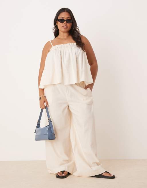 ASOS DESIGN Curve shirred waist pull-on pants & shirred cami set in cream