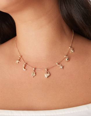 ASOS DESIGN Curve short necklace with multi-charm details in gold tone