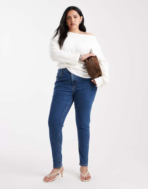 ASOS DESIGN Curve skinny jeans in mid blue
