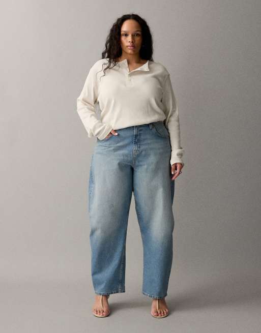 ASOS DESIGN Curve slim barrel leg jeans in light midwash
