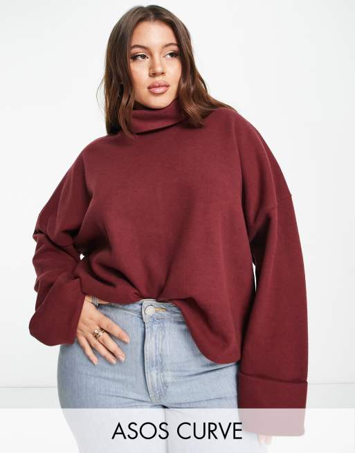 ASOS DESIGN Curve super soft roll neck sweater with cuff detail in merlot