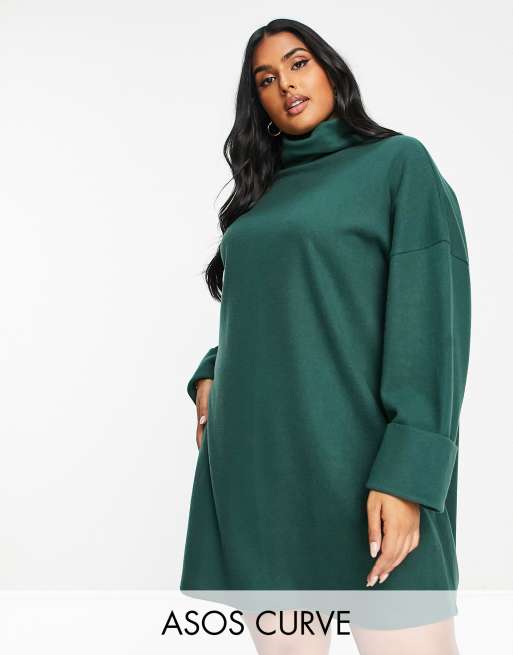 ASOS DESIGN Curve supersoft turned cuff turtle neck mini sweater dress in forest green