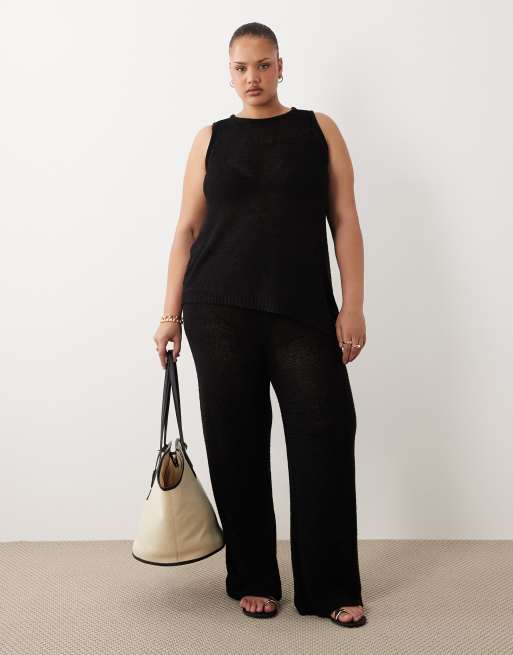 ASOS DESIGN Curve tape a-line cami top & pants set in black
