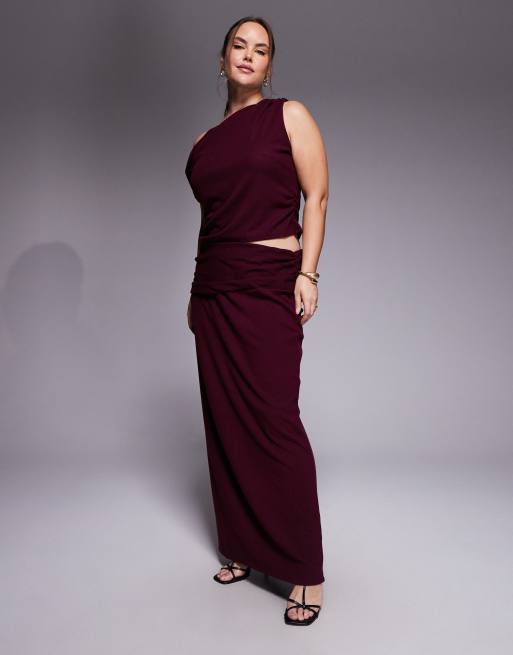 ASOS DESIGN Curve textured rib column maxi skirt in burgundy - part of a set