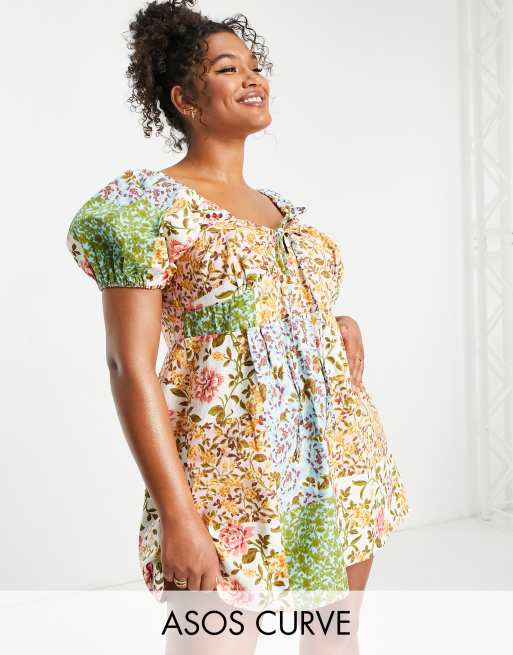ASOS DESIGN Curve twill button up sweetheart mini tea dress in mixed floral print