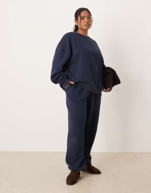 ASOS DESIGN Curve ultimate cuffed brushback sweatpants in navy