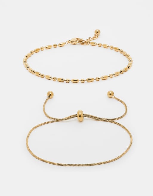 ASOS DESIGN Curve waterproof stainless steel pack of 2 friendship bracelets in fine chain with gift bag