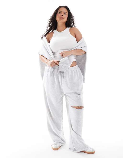 ASOS DESIGN Curve wide leg sweatpants with ripped knee in gray heather