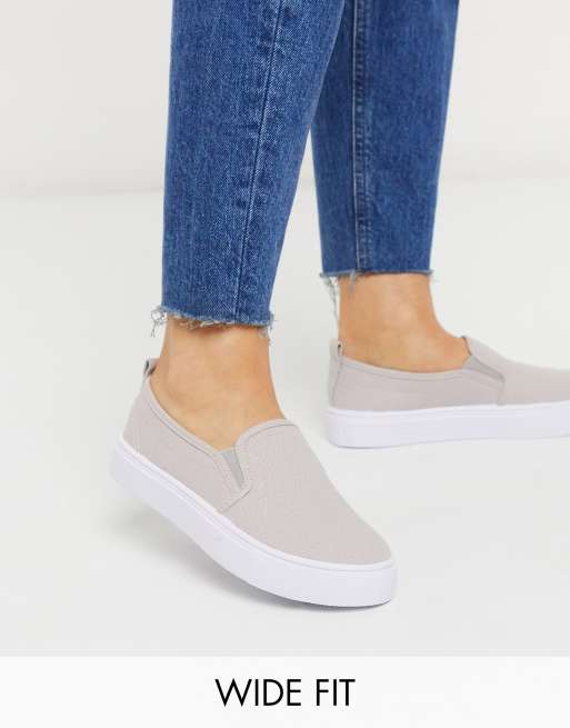 ASOS DESIGN Wide Fit Dotty slip on plimsolls in gray
