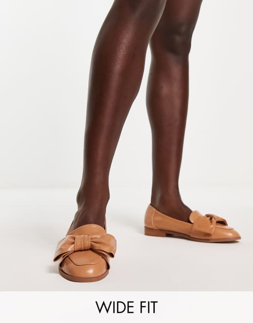 ASOS DESIGN Wide Fit Mentor bow loafer flat shoes in tan