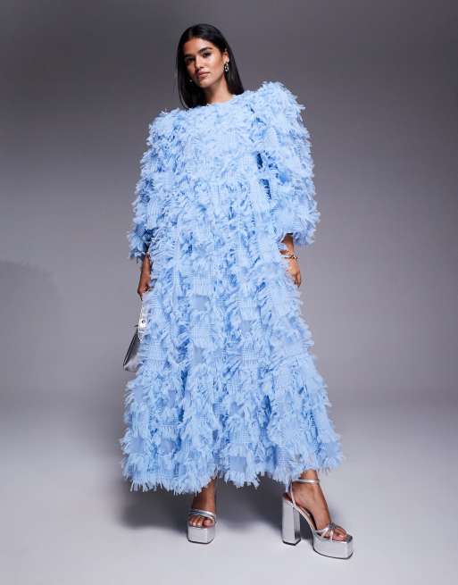 ASOS ARCHIVE oversized textured mesh midaxi dress in blue