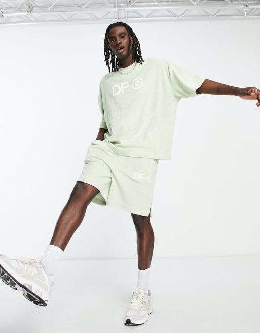 ASOS Dark Future set in terry cloth with side splits and logo embroidery in lig