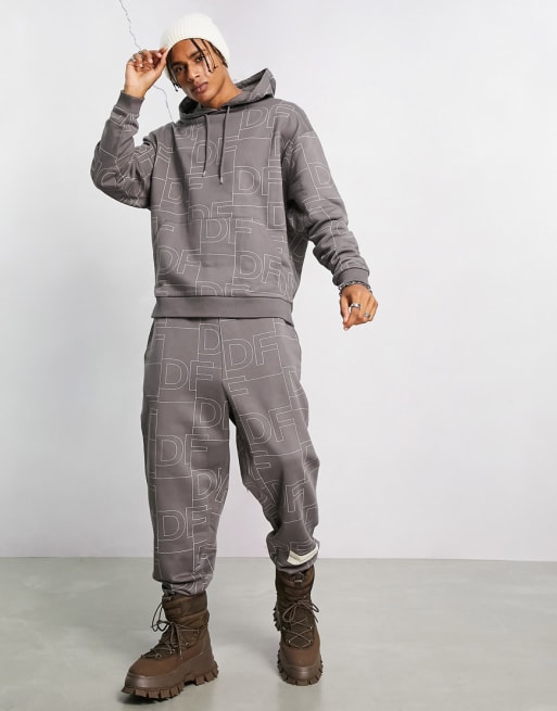 ASOS Dark Future set with all-over logo print in dark gray