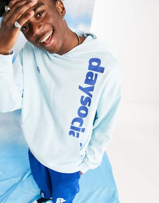 ASOS Day Social hoodie with vertical logo print in light blue - part of a set