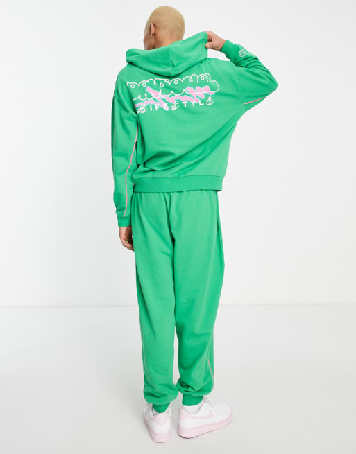 ASOS Daysocial set with logo graphic prints and contrast piping in green