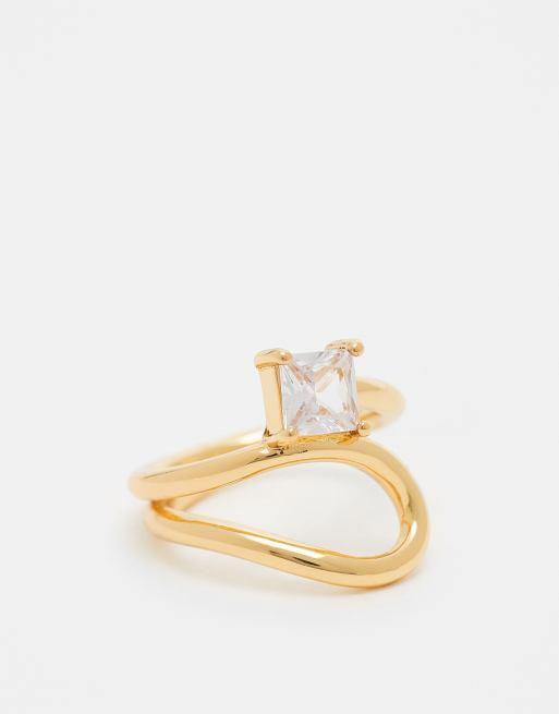 ASOS DESIGN 14k gold plated ring with wraparound cubic zirconia design with gift bag