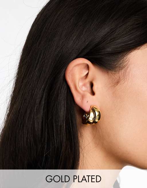 ASOS DESIGN 14k gold plated small hoop earrings with thick crossover design