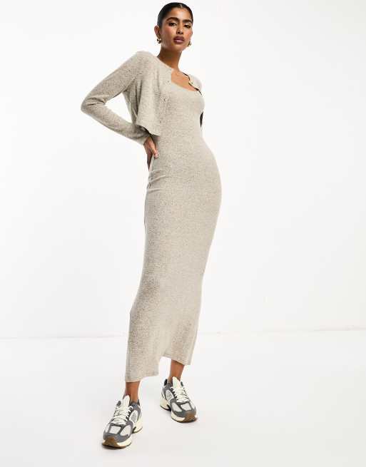 ASOS DESIGN 2 in 1 cardigan with maxi strappy dress in oatmeal