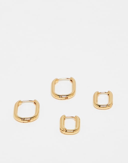 ASOS DESIGN 2 pack 14k gold plated rectangular hoops