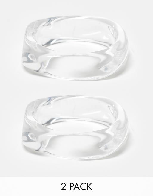 ASOS DESIGN 2-pack bangle bracelets with clear resin detail