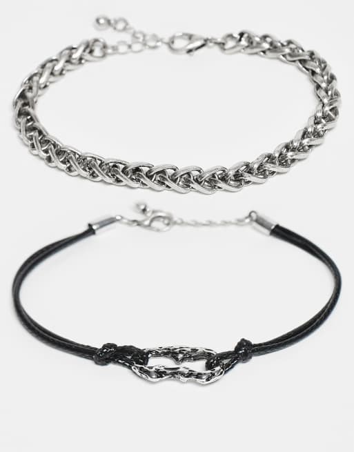ASOS DESIGN 2-pack chain and cord bracelets in black