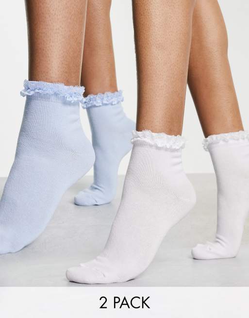 ASOS DESIGN 2 pack frill socks in multi