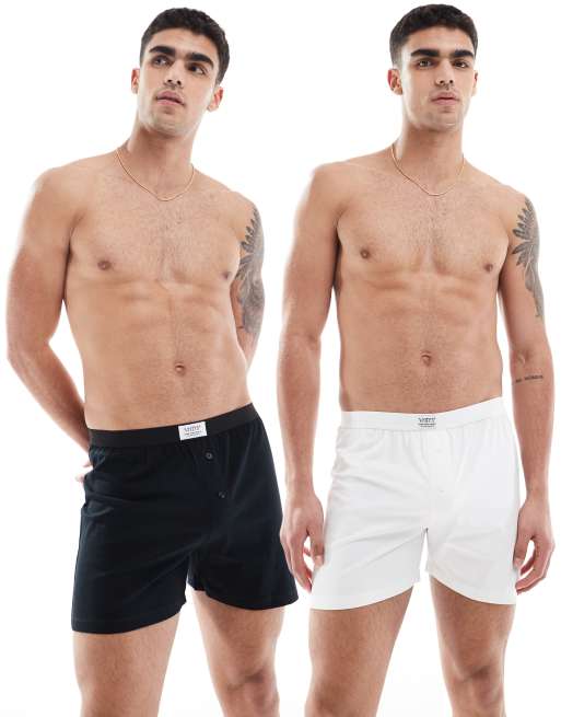 ASOS DESIGN 2 pack jersey boxers with woven patch waistband in multi