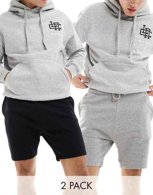 ASOS DESIGN 2 pack mid length skinny shorts in black and heather gray
